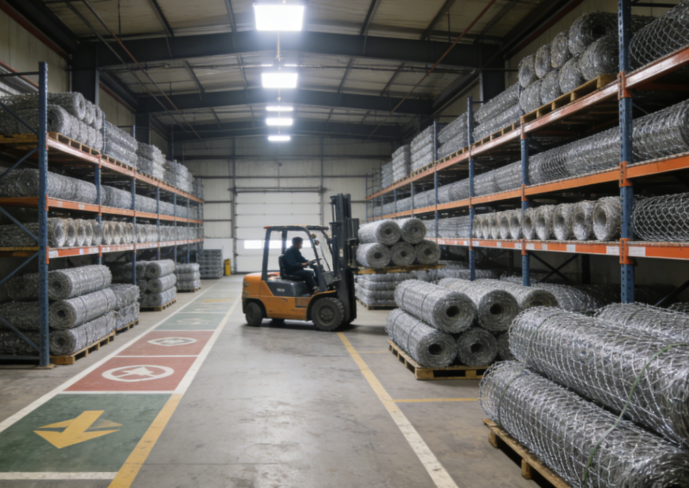 Our 12,000㎡ fully enclosed standardized workshop and intelligent warehouse are equipped with constant temperature and humidity control. From raw material incoming to finished wire fencing product delivery, the entire process adheres to the ISO 9001 quality management system. With professional forklifts and heavy-duty racks, we ensure the quality stability of cattle wire mesh and other products during production and storage, enabling efficient turnover for bulk orders.